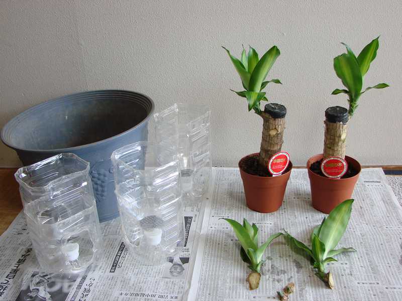 5/20 大きな鉢は"福ちゃん" ペットボトル鉢は"エコちゃん" です。よろしくね。直射日光の当たらないベランダに置きました。 エコちゃん 葉 9枚 土 腐葉土(18g×1)+赤玉土小(16g×3)+マグァンプK少々 カットした芽も同じ土にしてみました。 |