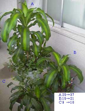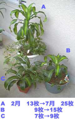 うちのはまだ咲きそうにないので、葉っぱの生長記録を書いてみたいと思います。(2001年7月)